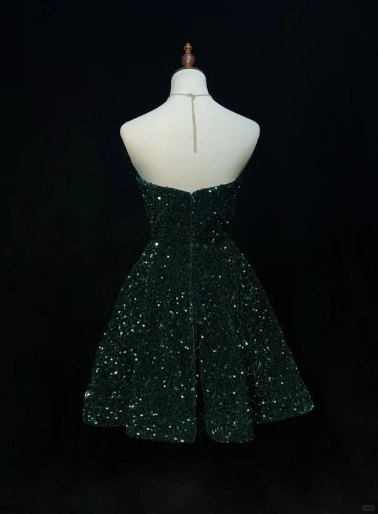 Green shiny princess sequin short retro fashion homecoming dress prom dress evening dress nv4286