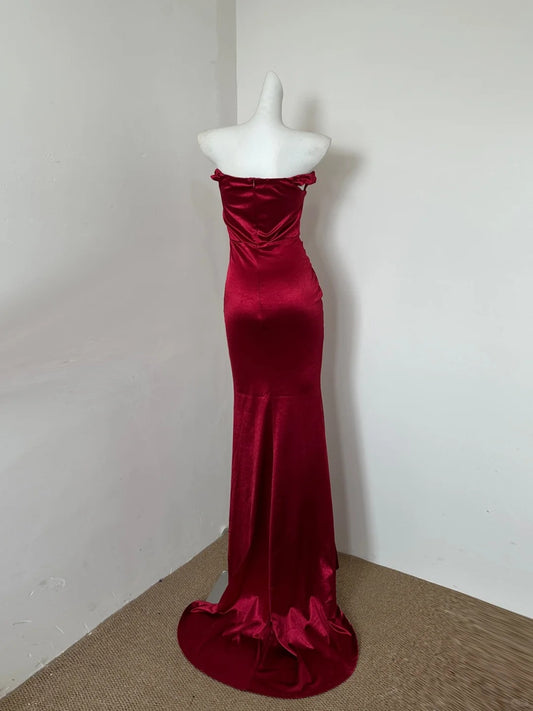 Red Delicate Appliqué Long Mermaid Slim Fit Floor Length Satin Ball Gown Evening Gown Party Dress nv4171