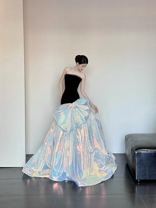 Black shiny gorgeous elegant satin long mermaid floor length ball gown evening dress nv4055
