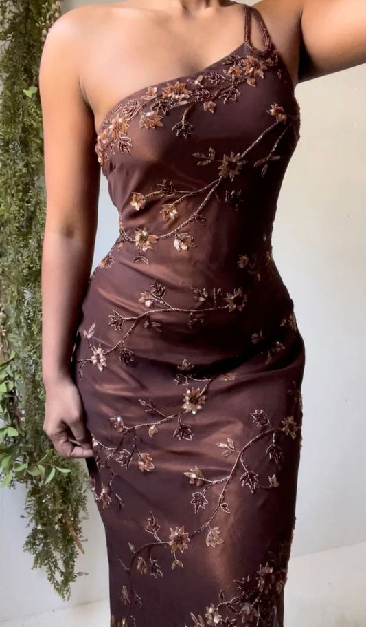Brown/Black Fashion One Shoulder Exquisite Beading Long Chiffon Ball Gown Evening Dress Party Dress nv3661