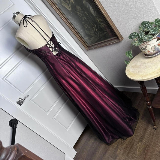 Black/Burgundy Vintage Fashion Exquisite Beading Elegant Backless Long Satin Tulle Formal Prom Dress Evening Gown Party Dress nv3649