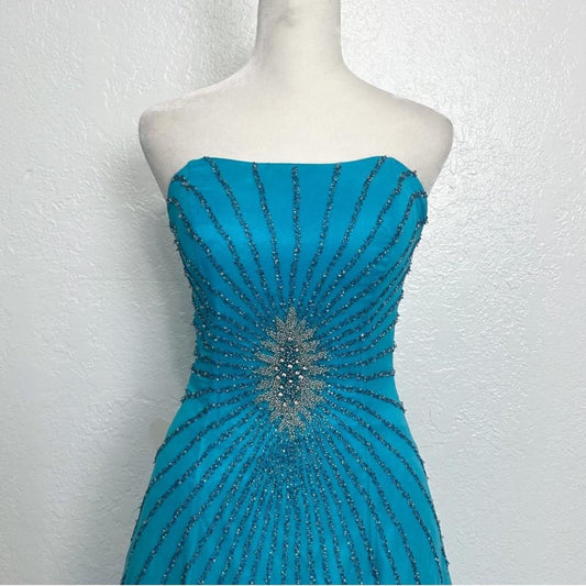 Blue gorgeous shiny exquisite beading elegant long stylish satin chiffon formal prom dress evening gown party dress nv3645