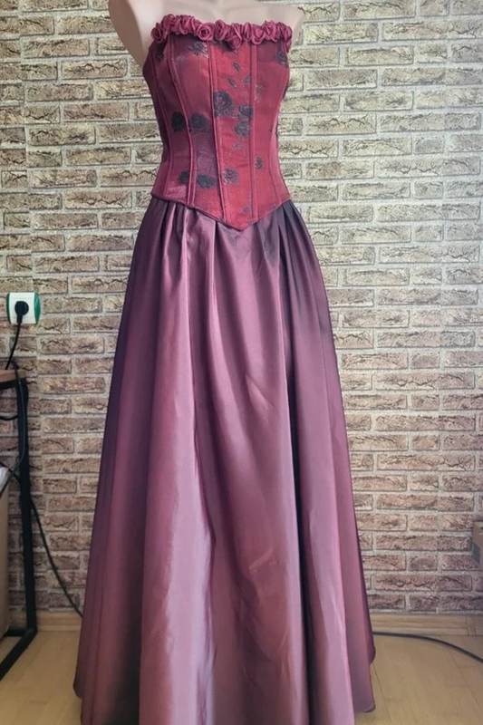 Pink Purple Vintage Fashion Floral Long Elegant Satin Tulle Corset Evening Dress Customized Ball Gown Evening Dress nv3642