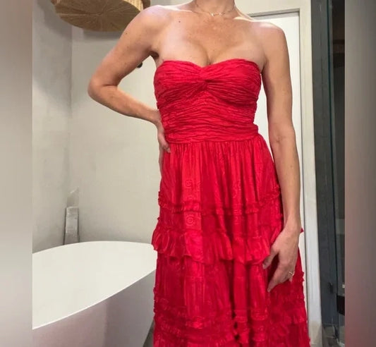 Pink Pretty Charming Fashion Tube Top Long Ruffle Chiffon Ball Gown Evening Dress Party Dress nv3436