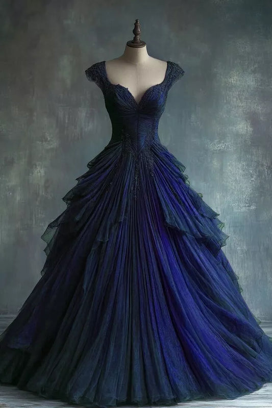 Purple Gorgeous Vintage Sweetheart Neck Beaded Long Tulle Layered Floor Length Ball Gown Evening Dress nv3356