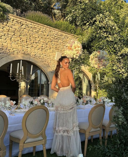 White V-neck stylish elegant lace long tulle ball gown evening dress wedding guest dress nv3335