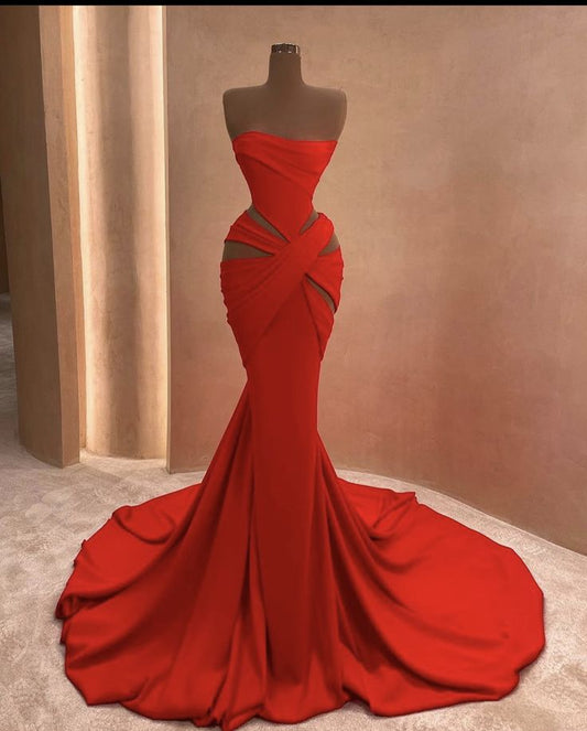 Red fashion tube top Long sleeves/sleeveless long sexy straps elegant trailing ball gown evening dress nv3281