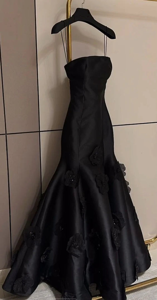 Black fashion unique three-dimensional rose flower mermaid off-shoulder sleeveless satin long ball gown evening dress party dress nv3247