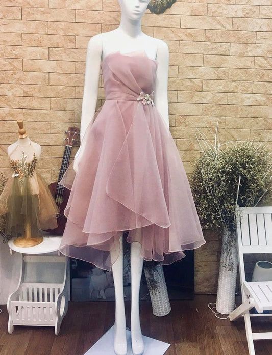 Pink tube top tulle sweet short homecoming dress holiday birthday party dress nv3099