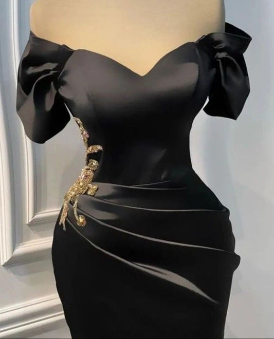 Black sweetheart neckline embroidered beaded satin long slit ball gown evening dress nv3098