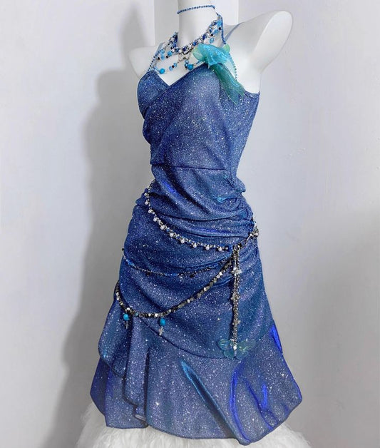 Blue Sparkling Sequin Spaghetti Strap Short Homecoming Dress Party Gown nv3023