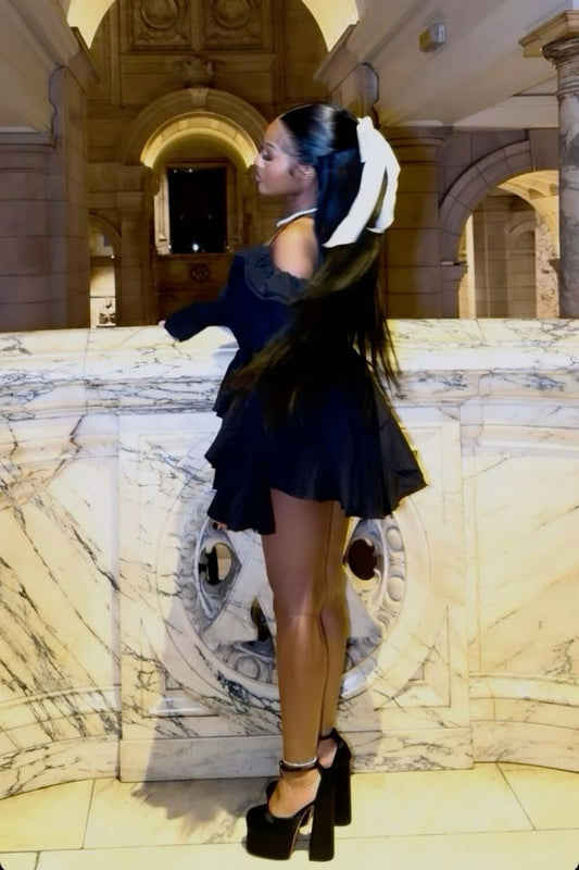Black Ruffle Long Sleeve Short Chiffon Homecoming Dress Party Dress nv2973