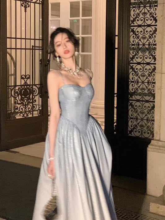 Blue A-line Strap Sequined Long Ball Gown Formal Evening Dress nv2821