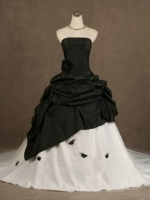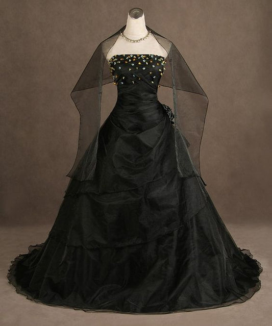 Black Gothic Vintage Elegant Long Satin White Tulle Ball Gown Evening Dress Party Dress nv2604