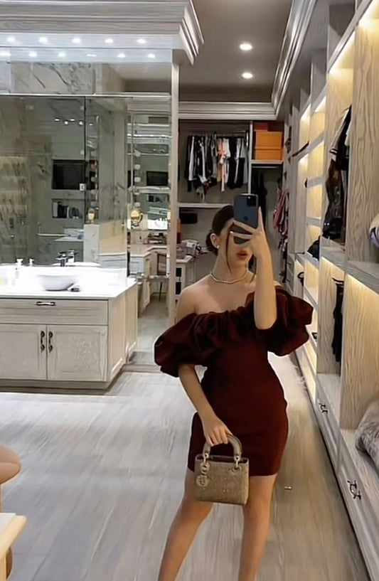 Dark Red Fashion Slim Fit Off Shoulder Short Mini Homecoming Dress Party Dress nv2429