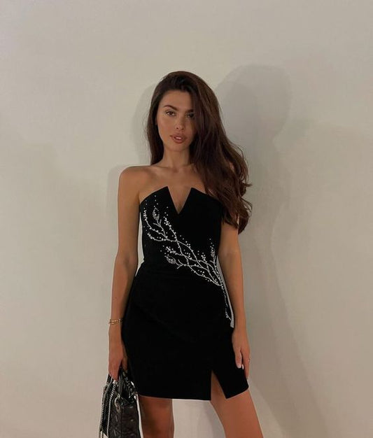 Black beaded simple fashion short party dress evening dress homecoming dress nv2173