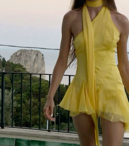 Yellow fashion halter waist long backless bow elegant prom dress evening dress party dress nv4682