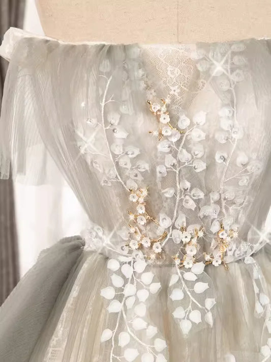 Vintage A-line Off-shoulder Tulle Homecoming Dress Birthday Outfit Prom Dress nv2061