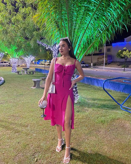 Rose red side slit sleeveless mid-length short evening dress homecoming dress nv1942