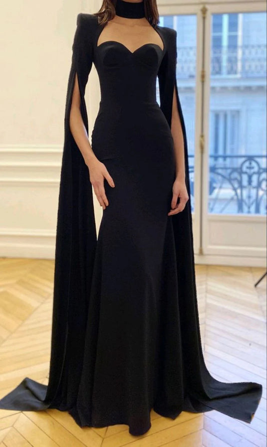 Vintage Mermaid Black Birthday Party Dress Prom Dress with Cape Evening Dress nv1946