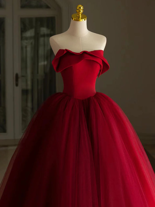 A-Line Tulle Burgundy Long Prom Dress, Burgundy Long Formal Dress nv1681
