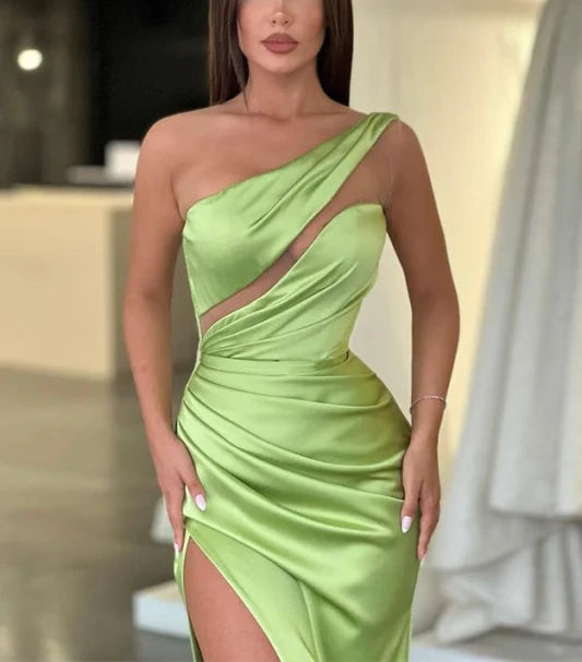 One Shoulder Ruched Satin Long Prom Evening Dresses nv1666