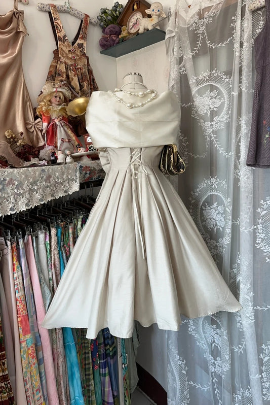 Ivory White Vintage Elegant Short Satin Homecoming Dress Birthday Party Dress Prom Dress Evening Dress nv4631