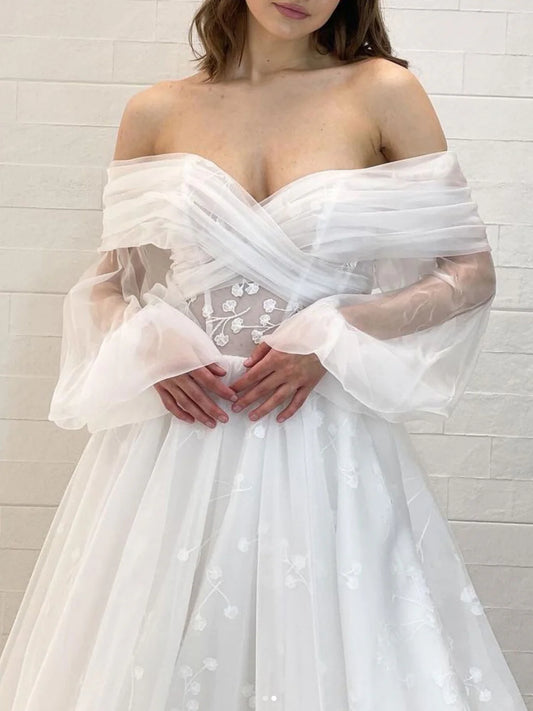 Purple Tulle Floor Length A-Line Prom Dress, Off the Shoulder Evening Party Dress nv1535