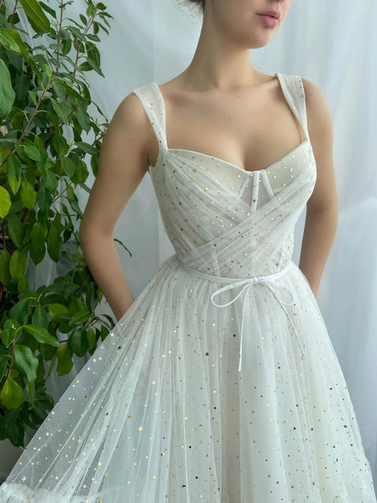 ivory sweetheart neck tea length prom dress ivory formal dress nv1533