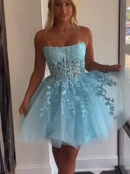 Strapless Purple/Red/Blue Lace Short Prom Dresses, Purple/Red/Blue Lace Homecoming Dresses, Short Formal Evening Dresses nv1483