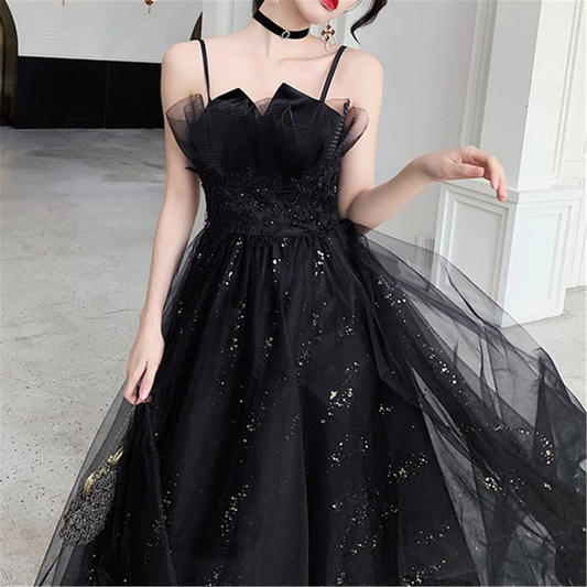Black Glitter Tulle Prom Dress, Black Slip Evening Prom Dress nv1051