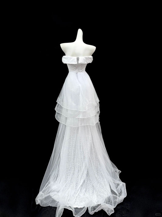 NiceVestidos--White Sparkling Exquisite Beaded Long Tulle Wedding Prom Dress Nv5607