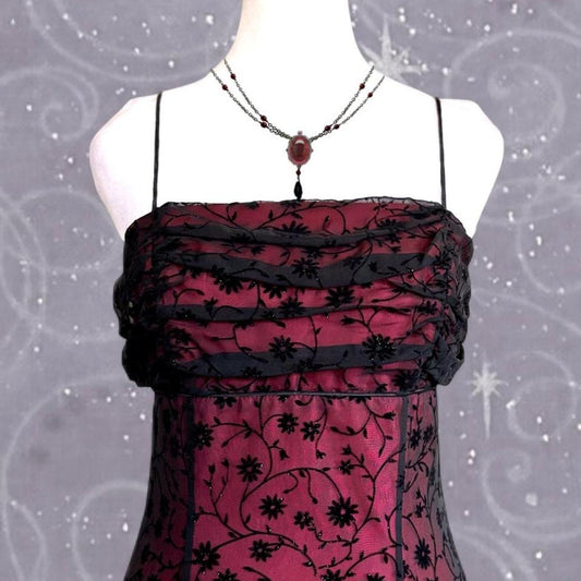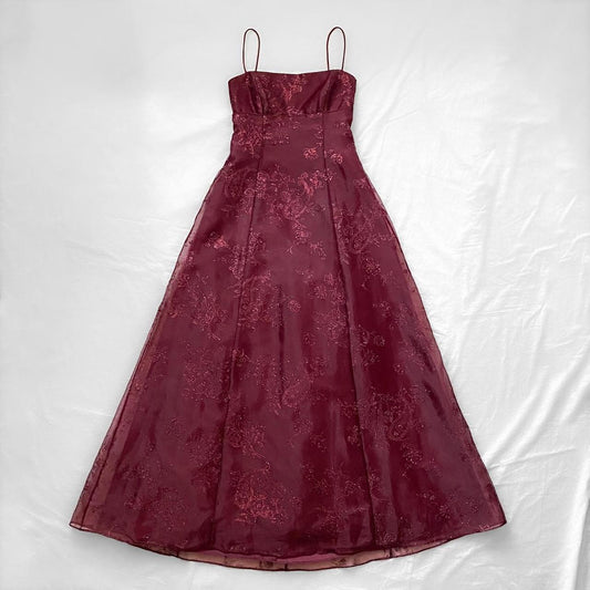 NiceVestidos-Burgundy Red Floral Dress Vintage Dress Women's Exquisite Long Tulle Ball Gown NV5644
