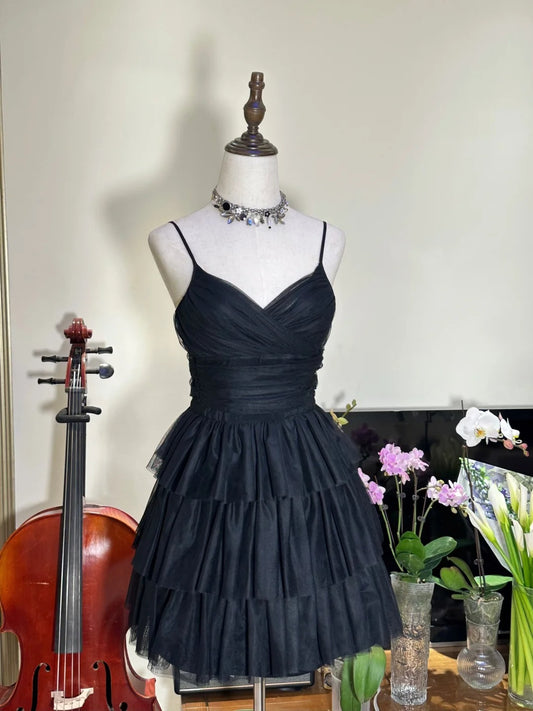 ✨Beautiful date little black dress short chiffon homecoming dress party dress nv5431