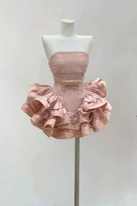 Pink Bow Short Satin Homecoming Dress Birthday Party Dress nv5275