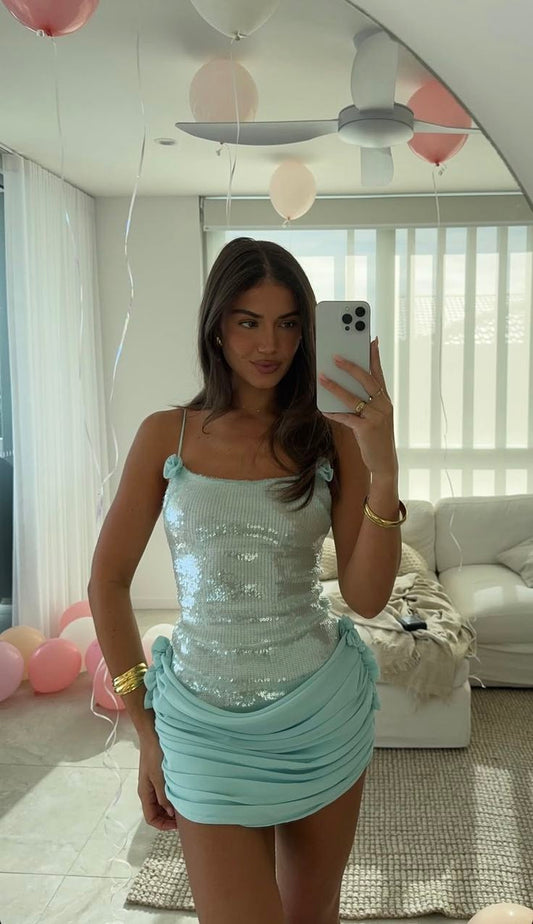 Blue shiny sequins fashion short homecoming dress birthday party dress nv5242
