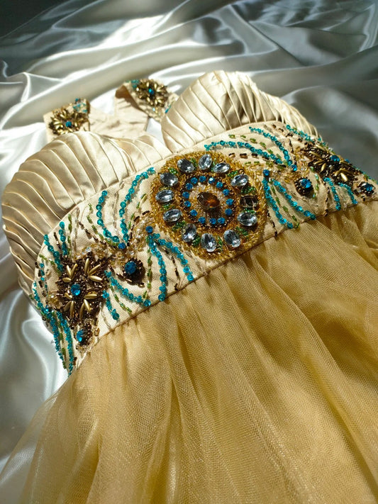 Gold Beaded Gorgeous Tulle Short Homecoming Dress Birthday Dress nv5237