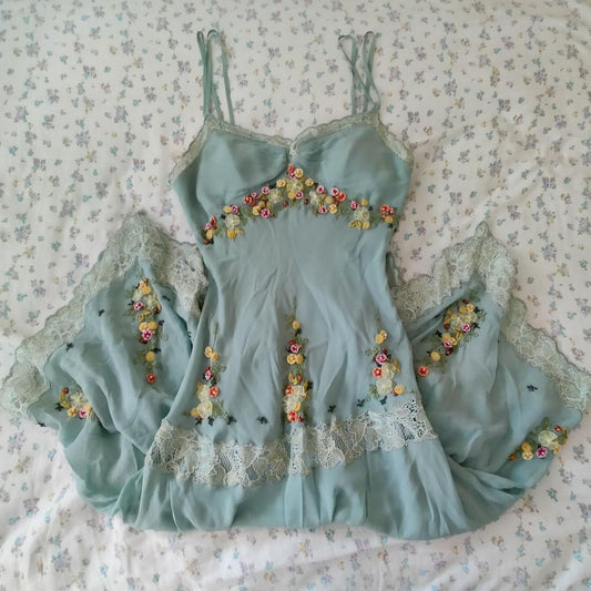 Green Vintage Floral Short Chiffon Homecoming Dress nv4475