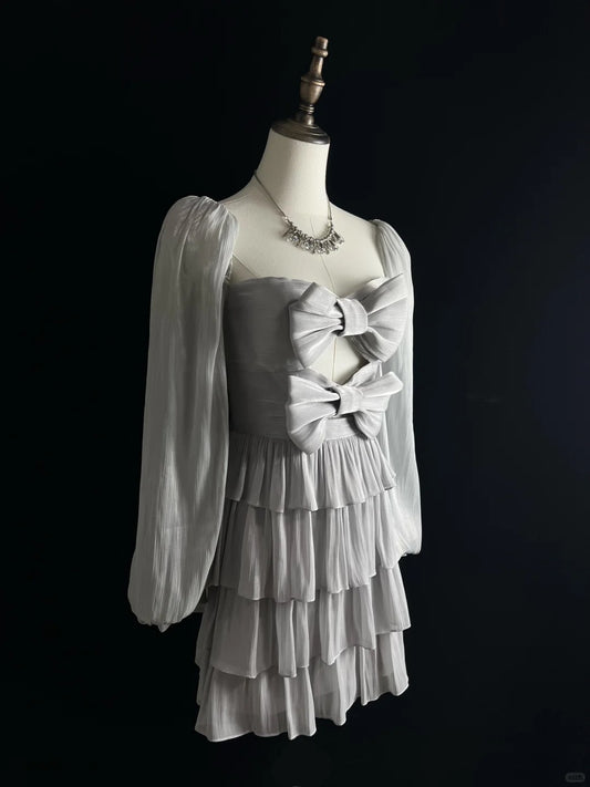 Silver Bow Fashion Short Satin Homecoming Dress Party Dress nv4883