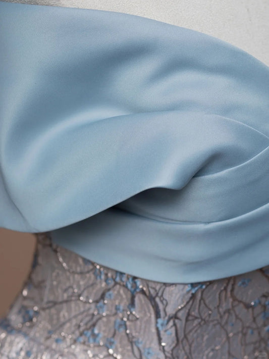 Blue Fashion Unique Long Tulle Evening Dress Satin Sexy High Slit Slim Midi Skirt Prom Dress Evening Dress Party Dress nv3437