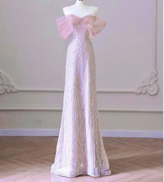 Pink Vintage Elegant Fashion Exquisite Beading Long Fishtail Slim Mermaid Long Satin Ball Gown Evening Dress Prom Dress nv3765