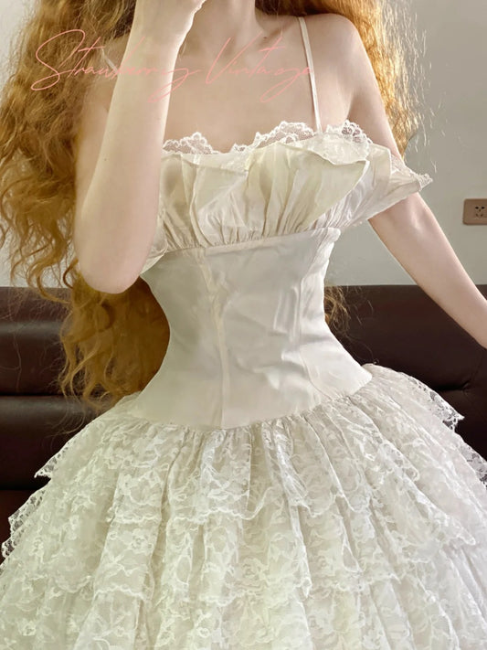 Ivory White Vintage Elegant Lace Long Princess Ball Gown nv5000