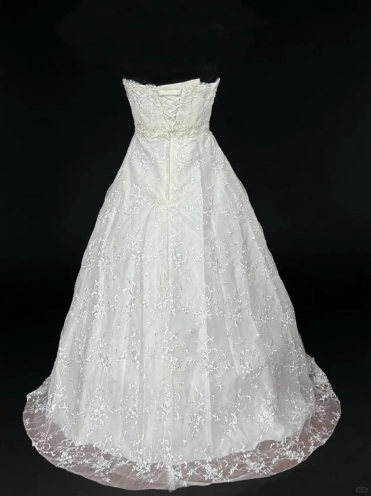 Ivory White Beaded Sweetheart Neck Lace Elegant Long Fairy Tulle Ball Gown nv4845