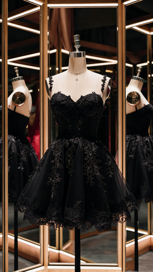 Black Short Birthday Dress, Lace Evening Dress, Party Dress NV6860