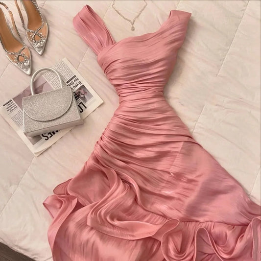 Pink Satin One-shoulder Gown: Banquet Centerpiece Look NV6397