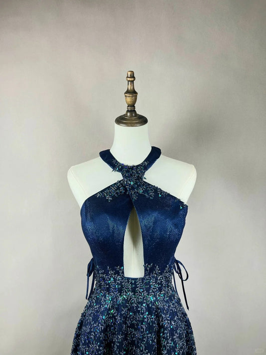 Blue floral beaded fashion short satin homecoming dress birthday dress nv4490