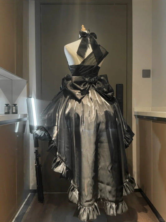 Black homecoming dress elegant sexy short satin asymmetric prom dress evening dress birthday dress nv4412