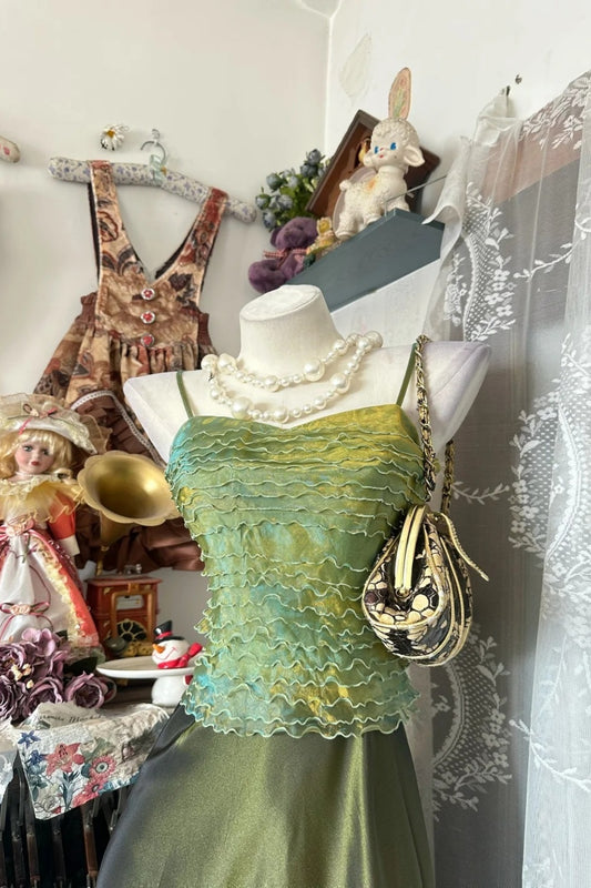 Long chiffon evening gown Vintage emerald green NV6746