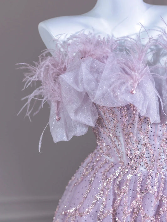 Purple Sparkling Beaded Feather Long Prom Dress nv4968