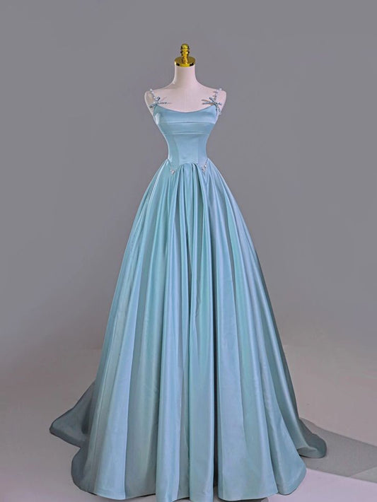 Blue Beaded Long Satin Prom Dress Evening Gown Party Dress nv4882